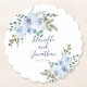 Add the finishing touches to your reception with these paper coasters featuring light blue flowers and matching greenery. Personalise with your own information.