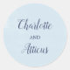 These light blue watercolor wedding envelope seals are perfect for a spring wedding. Personalise the label with the names of the bride and groom.