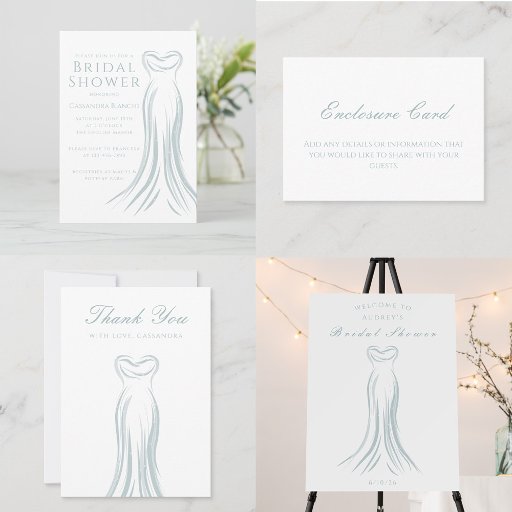 A beautiful and elegant bridal gown in shades of light blue with a touch of sparkle adorns this thank you card. This product can be purchased for print or digital download.