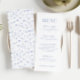 Elevate your wedding reception details with these elegant and whimsical light blue flower blooms rustic wedding menu cards. Immerse your guests in a botanical-inspired dining experience with the delicate charm of these refined menu cards. Perfect for adding a touch of sophistication to your rustic wedding celebration.