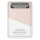 Modern, minimal clipboard featuring a thin black border along the edge over two white and light blush pink, angled colour blocks. Customisable template fields for your name and custom text.