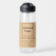 25 oz plastic water bottle that you can customise to put your business name. You can give it as gift, giveaway item or promotional product to promote your brand name to your customers or clients. You can also include it in your marketing materials to advertise your business. Customisable water bottle that you can use to build brand name awareness. Label design on the bottle is dark brown and black texts on light brown background. To customise this water bottle, upload your business logo, type your business or company name, address, phone number, e-mail and website or social media page. After uploading logo and typing texts, please check the appearance on front and back sides. If the appearance is pleasing to you, you can place your order now. If you need to resize and move the logo and texts to fit on this bottle or on other sizes and styles that you will choose, please change in the design tool. You can also make other changes according to the appearance that you prefer in the design tool such as changing the background colour, font colour and font style.