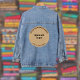 Women's denim jacket with your business name, logo, city or town and state. Jacket that you can include in your promotional products, giveaway items or gifts to your customers or clients to advertise your business or to promote your brand name. Jacket with your business brand that you can use to build brand name awareness. Jacket as uniform also of your staff. Design colours are black texts on light brown round shape background. Please check the appearance after uploading logo and typing texts on the size that you chose. If the appearance is pleasing to you, you can place your order now. If you need to resize and move the logo and texts, please change in the design tool. You can also change the font style, font colour and colour of the round shape background in the design tool.