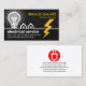 A creative street light bulb tree is powered up by a yellow lightning that draws power from your prestigious name and job title at the top. Near the base is the business name "electrical service" and its contact details.