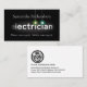 Two hanging lights (that form the dots from the letter "i") shines bright and forms a vignette over the "electrician" signage. At the top is your prestigious name with the contact details near the base of the card.