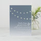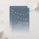 An outdoors evening wedding invitation featuring an illustration of two strings of light bulbs across a night sky dotted with stars. Personalise the text with your information.