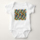 This baby bodysuit has a geometric design of light-coloured diamonds overlapping each other on a field of black.