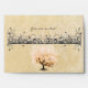 Pale Coral Heart Leaf Tree with Two Whimsical Doves Flying On a Swirly Faux Burnt Parchment Card