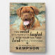 Personalized pet memorial plaque featuring a photo of your beloved pet in a smudge frame, a light country rustic wooden background, and a sympathy quote that reads "you smiled with your eyes, laughed with your tail and loved with all your heart", a paw print, heart, your dogs name, and the dates. A wonderful keepsake and tribute of your precious family pet dog or cat.