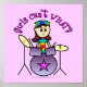 Drummers, percussionists, band members, musicians and future rock stars will love this hard-hitting design. Who says girls can't play drums? Girls Can't WHAT?