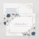 Light Dusty Blue Blush Pink Gold Floral Thank You Postcard