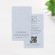 Modern, vertical business cards with your name and title on the front on a light dusty blue printed linen look background. Customisable template fields for your contact information and logo on the back. You can move and resize elements with the design tool.