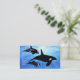 Two female and one male killer whales hunt together in the beautiful clear ocean.