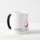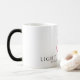 Starts out black and when you add the magic of a cup of coffee, changes to reveal the LE round bottom flask logo. What great chemistry happen every morning.