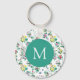 Light Floral Pattern Teal Monogram Key Ring