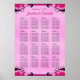 © Sunny Mars Designs - Floral Hibiscus: Soft Light Fuchsia Magenta Sixteen Tables Wedding Seating Chart - This custom formal 16 table seating chart feature an illustration of a dark pink, purple or fuschia swirly hibiscus floral decoration.