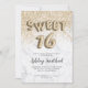 light gold glitter letters marble sweet sixteen invitation