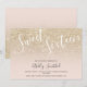 light tgold glitter ombre blush pink typography Sweet 16 party invitation.