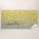 Light gold grey ombre faux sparkles Custom name Beach Towel