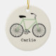 An ornament featuring an illustration of an light green bicycle. Personalise with your name under bike.