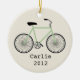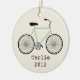 An ornament featuring an illustration of a light green bicycle. Personalise with your name under bike.