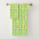 Modern designer towel set in a lemon lime and orange citrus print. The light green can be personalised to any colour to coordinate with your bath decor.