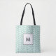 Light green mint polka dots monogram tote bag