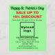 Light green flyer for St. Patrick's Day that you can customise by specifying the discount percentage, sale dates, uploading your business logo, typing your business name, address, phone number, email and website. Customise it and distribute it to attract more customers to buy your products or clients to like your services. Please check the appearance of the front and back sides after uploading logo and typing texts. If the appearance is pleasing to you, you can place your order now. If you need to resize and reposition the logo and texts to fit on this flyer or on the size that you've chosen, please adjust in the design tool. You can also change the background colour, font colour and font style in the design tool. Happy St. Patrick's Day! Wishing you the best of luck, joy and more sales this holiday.