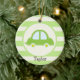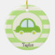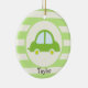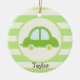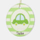 Cool, retro, colourful kid's Light Green Toy Car design on white stripes, striped pattern with vintage feel. Perfect gift for baby, toddler, kids, children, teens, or adults! Personalised the design by adding a child's name or custom text. Visit our store, Birthday Party House, for more great customisable boy and girl products and room decor!