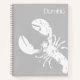 Contemporary design light grey notebook printed with distressed look lobsters. The front of the notebook features a single large grunge lobster, and your name/text (click CUSTOMISE to change this). The rear of the notebook features a pattern of smaller lobsters. Great idea for seafood businesses, fishmongers, lobster boil events, beach bars and restaurants. The base colour of the notebook can also be personalised to suit your taste.