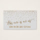 In a swirling, modern script font, the words "this one is on us!" appear on the front of this drink ticket. The phrase has been embellished with a faux glitter gold effect. "Good for One Adult Beverage" is the editable field in a coordinating art deco font at the bottom. On the other side is "Cheers" and a template place holder for your names. Festive gold glitter-embellished confetti seems to fall from above on both sides. You may change the background to any colour or hue you like.