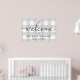 This welcome sign features a timeless gingham design with a hand-lettered script font. The script "baby shower and registered" heading is an image that cannot be edited. All of the other text is fully editable. For more advanced customisation of this design, simply select the "Customise It" button above.