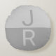 Light Grey & Grey Modern Initials Monogram Round Cushion
