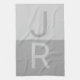 Light Grey & Grey Modern Initials Monogram Tea Towel