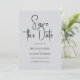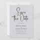 Whimsical minimalistic modern, customisable black script typography, elegant save-the-date invitation. The light grey colour printed linen texture background adds a touch of organic feel of classic elegance. Other colours are available.