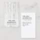 Light grey, vertical business cards with you name and title/company name on a weathered wood grain texture on the front and template fields for name and contact information on the back.