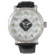 Light Grey White Chevron Black Quatrefoil Monogram Watch