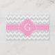 Light Grey White Chevron Pink Quatrefoil Monogram Business Card