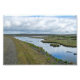 A compelling landscape shot showcasing the quiet majesty of a reservoir. The scene is framed by a rustic railing, leading the eye across a winding stream feeding into the larger body of water. Under a captivating cloudy sky, distant power pylons add a unique industrial-meets-nature esthetic. This image evokes feelings of contemplation and the subtle power of both natural and man-made structures coexisting. Ideal for anyone seeking a distinctive, thought-provoking natural scene with a touch of modern presence. This image can be edited and transferred to multiple products of your choosing.