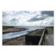 A compelling landscape shot showcasing the quiet majesty of a reservoir. The scene is framed by a rustic railing, leading the eye across a winding stream feeding into the larger body of water. Under a captivating cloudy sky, distant power pylons add a unique industrial-meets-nature esthetic. This image evokes feelings of contemplation and the subtle power of both natural and man-made structures coexisting. Ideal for anyone seeking a distinctive, thought-provoking natural scene with a touch of modern presence. This image can be edited and transferred to multiple products of your choosing.