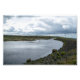 A compelling landscape shot showcasing the quiet majesty of a reservoir. The scene is framed by a rustic railing, leading the eye across a winding stream feeding into the larger body of water. Under a captivating cloudy sky, distant power pylons add a unique industrial-meets-nature esthetic. This image evokes feelings of contemplation and the subtle power of both natural and man-made structures coexisting. Ideal for anyone seeking a distinctive, thought-provoking natural scene with a touch of modern presence. This image can be edited and transferred to multiple products of your choosing.