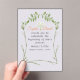 A delicate lavender acrylic wedding invitation featuring a soft greenery frame and a baby's breath bouquet centerpiece. perfect for outdoor garden weddings, combining modern elegance with a natural touch.