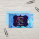 The front of the card displays a galaxy themed background, with a fancy border surrounding a rainbow font spelling out "Light, One, Love". The nebula blue, purple, light blue background, and rainbow font "Light, One, Love" was hand painted with water colour. You can customise the back info yourself by clicking on customise.
