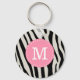 Light Pink and Black Zebra Stripe Custom Monogram Key Ring