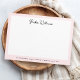 Modern note cards with light pink border and your custom name in a handwritten style font at the top. At the bottom is a template field for your custom text, for example a slogan or a return address.