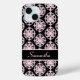 An ornate damask pattern in light pink on a black background with light pink text on a black and pink strip. Personalise with your own text to create a unique and personalised gift.