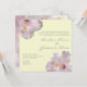 A tropical wedding invitation featuring a close up photo of a light pink hibiscus. Opposite side features photos of light pink hibiscus flowers at top left and bottom right corners. Personalise the grey text with detail of your event. Wording is from bride's parents.