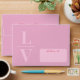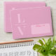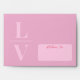 Light pink initials and bright red wedding envelope