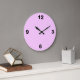 A simple wall clock with a light pink background and large black numbers marking the 12, 9, 6 and 3. For any pink decor room. Click Customise It to add your custom text, change background colours and more.