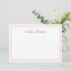 Flat, blank stationery notecards featuring a light pink mosaic style border on a white background with your custom name. All colors are customizable.